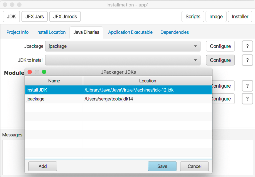 In a burst of enthusiasm, I spent the last few weeks creating a GUI frontend to the jpackage utility, slated for the upcoming JDK 14 release. I called the tool Installmation, a portmanteau of ‘installation’ and ‘automation’. It’s written in Kotlin and JavaFX, of course, and focuses on creating JavaFX application installers, but can create non-JFX applications.