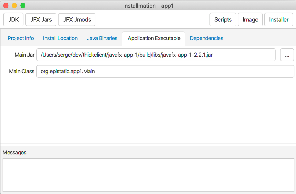Input Directory – Installmation copies all your project files to a single location, in a format easy for jpackage to process.