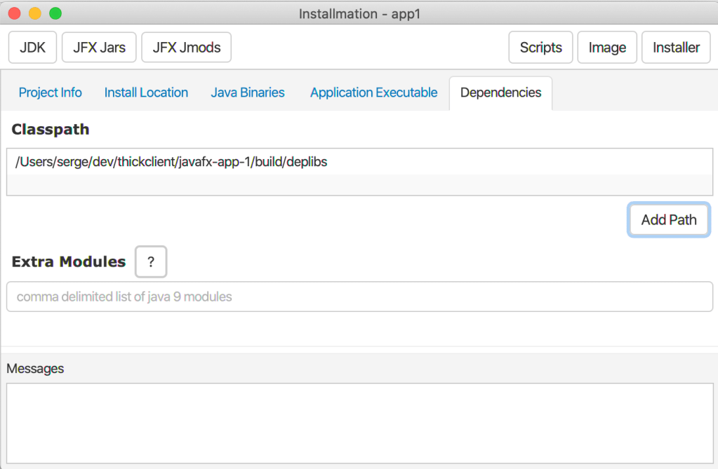 The tool is pretty basic at this stage. It needs a lot more testing, and has a strong JavaFX bias. A lot of installer tools don’t support JavaFX directly so I made a concerted effort to do so. I made efforts to make the interface as intuitive as possible, but I am sure it could be improved, so any feedback would be great – just create issues in GitHub.